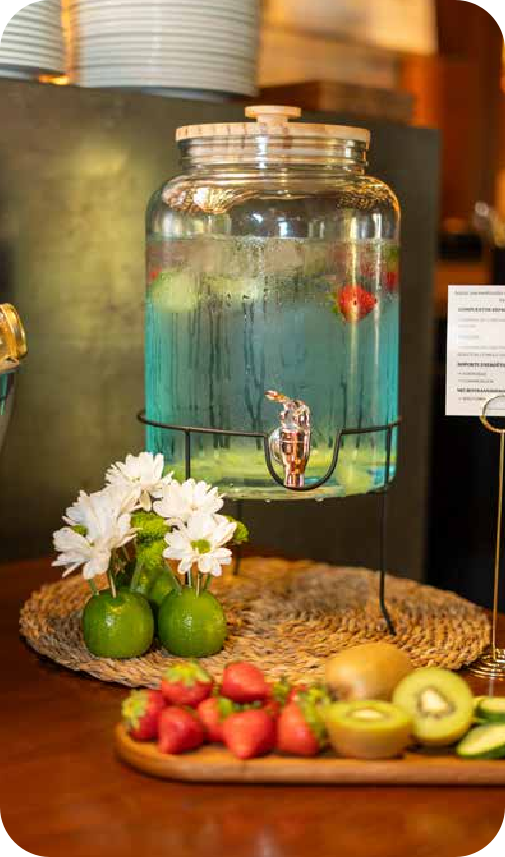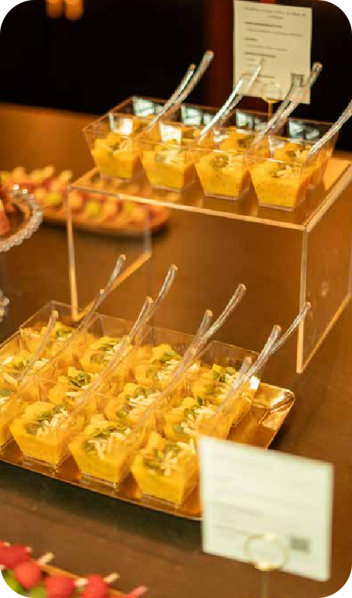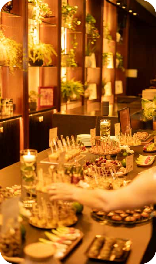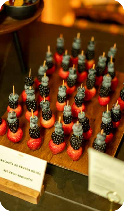 Esta Sinapse tem a capacidade de criar quatro estações de mesas que evidenciam um evento de grande porte, distribuido em ilhas temáticas que se conectam em uma imersão sensorial e funcional.